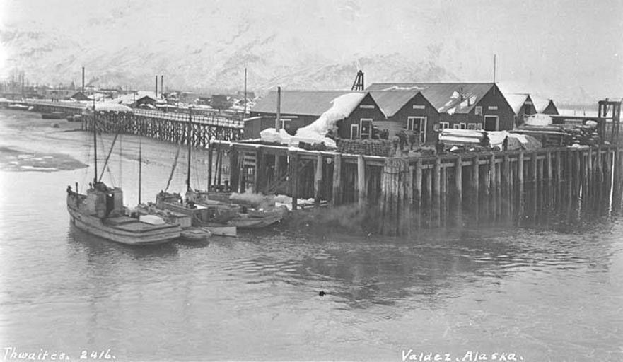 | Keywords: Valdez waterfront, ca 1912 (THWAITES 196).jpeg check categories 27 October 2016 4 Photograph Creator John E Thwaites Caption on image Valdez Alaska PH Coll 247 473<br/>Valdez is located on the north shore of Port Valdez a deep water fjord in Prince William Sound It lies 305 road miles east of Anchorage and 364 road miles south of Fairbanks It is the southern terminus of the Trans-Alaska oil pipeline The Port of Valdez was named in 1790 by Don Salvador Fidalgo for the celebrated Spanish naval officer Antonio Valdes y Basan Due to its excellent ice-free port a town developed in 1898 as a debarkation point for men seeking a route to the Eagle Mining District and the Klondike gold fields Valdez soon became the supply center of its own gold mining region and incorporated as a City in 1901 Fort Liscum was established in 1900 and a sled and wagon road was constructed to Fort Egbert in Eagle by the U S Army The Alaska Road Commission further developed the road for automobile travel to Fairbanks; it was completed by the early 1920s Tsunamis generated by the 1964 earthquake destroyed the original City killing several residents The community was rebuilt in a more sheltered location 4 miles to the west During the 1970s construction of the Trans-Alaska oil pipeline terminal and other cargo transportation facilities brought rapid growth to Valdez In March 1989 it was the center for the massive oil-spill cleanup after the Exxon VALDEZ disaster In a few short days the population of the town tripled Subjects LCTGM Valdez Alaska ; Waterfronts--Alaska--Valdez; Piers wharves--Alaska--Valdez; Fishing boats--Alaska--Valdez Subjects LCSH Docks--Alaska--Valdez depicted place Valdez Alaska ca 1912 Institution University of Washington UWASH-THWAITES-source accession number thwaites 196 PD-old-auto-1923 1940 Information field Order Number THW248 Images from the John E Thwaites Photographs of Alaska Collection to check Valdez Alaska Waterfronts Fishing boats Docks in Alaska |