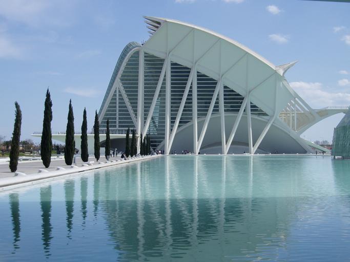 Keywords: valencia spain city of arts and sciences architecture modern building reflections pool building beautiful