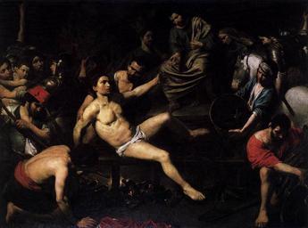 | Keywords: Valentin de Boulogne - Martyrdom of St Lawrence - WGA24245.jpg between 1621 1622 Oil on canvas size cm 195 261 Institution Prado object history credit line accession number WGA link 24245 http //www wga hu/art/v/valentin/martyrdo jpg http //www wga hu/html/v/valentin/martyrdo html PD-old-100 painting religious French 1601-1650 Valentin de Boulogne French paintings in the Museo del Prado Boulogne 17th-century paintings of Christian saints WGA form painting WGA type religious WGA School French WGA time period 1601-1650 1620s paintings from France |
