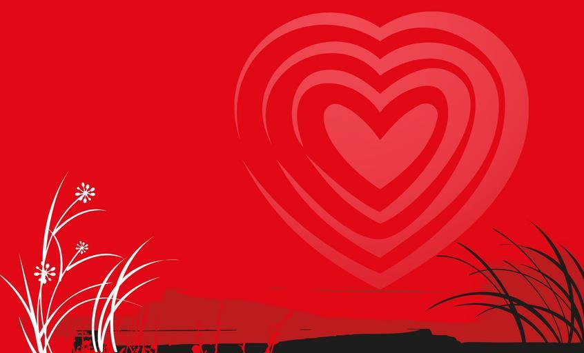 Keywords: valentine heart valentine's day love landscape sunset evening sky abendstimmung sun red white black grasses flowers graphic japanese fernöstlich