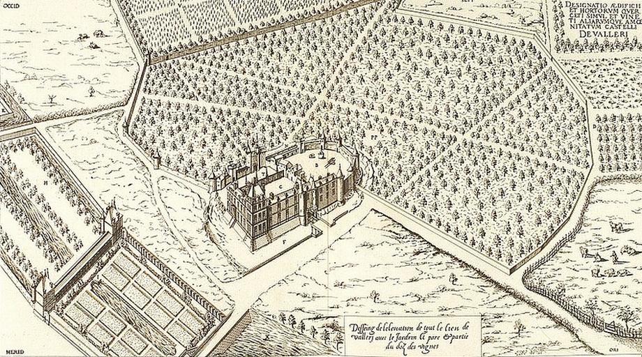 Keywords: Valleri.jpg fr Vue globale du domaine du château de Vallery Les plus excellents bastiments de France Androuet du Cerceau Jacques XVIème siècle PD-old Château de Vallery Le premier volume des plus excellents Bastiments de France