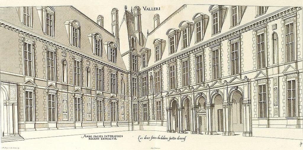 | Keywords: Valleri faces int.jpg fr Façades intérieures du château de Vallery le pavillon central et les deux hôtels Les plus excellents bastiments de France Androuet du Cerceau Jacques XVIème siècle PD-old Château de Vallery Le premier volume des plus excellents Bastiments de France |