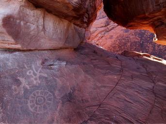 | Keywords: Valley of Fire-27527-7.jpg Native American petroglyphs at Atlatl Rock in the Valley of Fire <br />Photo taken with an Olympus E-P1 in Valley of Fire State Park NV USA <br />Cropping and post-processing performed with The GIMP http //www kenthomas us KenThomas us <br /> personal website of photographer 2010-10-25 18 59-07 <sup>ISO 8601</sup> Ken Thomas This image is released to the public domain and therefore no permission or credit is required <br />Comments and/or feedback however are always welcome Please see my user page or http //kenthomas us my personal website for details and contact info 36 25 23 05 N 114 33 01 86 W heading SW Valley of Fire petroglyphs Taken with Olympus E-P1 Created with GIMP |