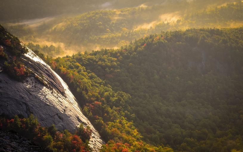 Keywords: valley forest landscape mountain scenic scenery hillside rock sunlight