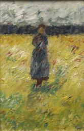 Keywords: Vallflicka (Carl Trägårdh) - Nationalmuseum - 117884.tif Carl Trägårdh sv I bildens mitt finns en flicka klädd i gråviolett klänning stående på en äng Gräset är målat i gult grönt och rött I fonden ett skogsbryn målat som ett mörkt gråviolett band i höjd med flickans huvud Himlen är målad i grå ljust blå och rosa toner Tekniken är skissartad och motivet är ytterst summariskt sammanfattat header I bildens mitt finns en flicka klädd i gråviolett klänning stående på en äng Gräset är målat i gult grönt och rött I fonden ett skogsbryn målat som ett mörkt gråviolett band i höjd med flickans huvud Himlen är målad i grå ljust blå och rosa toner Tekniken är skissartad och motivet är ytterst summariskt sammanfattat end other date decade 1890 Olja på duk Size cm 30 5 46 5 Institution Nationalmuseum Stockholm Signerad Trägårdh stämpelsignatur nere till höger accession number 117884 NM 7039 place of creation Erik Cornelius / Nationalmuseum Nationalmuseum Stockholm cooperation project Licensed-PD-Art PD-old-auto PD-Nationalmuseum_Stockholm 1899 Media contributed by Nationalmuseum Stockholm 2016-10 Paintings in the Nationalmuseum Stockholm Carl Trägårdh |