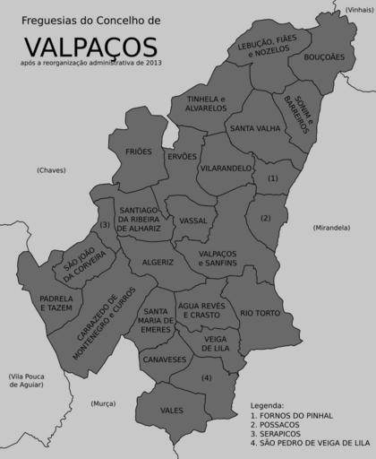| Keywords: Valpaços freguesias 2013.svg pt Freguesias do concelho de Valpaços Fontes Diário da República Reorganização administrativa do território das freguesias Lei n º 11-A/2013 de 28 de janeiro Direcção-Geral do Território Carta Administrativa Oficial de Portugal CAOP versão 2013 Continente http //www dgterritorio pt/ficheiros/cadastro/caop/caop_download/caop_2013_0/caop2013cont_zip_2 en Civil parishes in the municipality of Valpaços Portugal Sources Diário da República Administrative reorganization of the civil parishes' territory Law n 11-A/2013 from 28th January Direcção-Geral do Território Official Administrative Chart of Portugal CAOP version 2013 Mainland http //www dgterritorio pt/ficheiros/cadastro/caop/caop_download/caop_2013_0/caop2013cont_zip_2 2014-03-15 01 37 41 own Gazilion cc-zero Uploaded with UploadWizard Valpaços SVG maps of freguesias in Portugal |