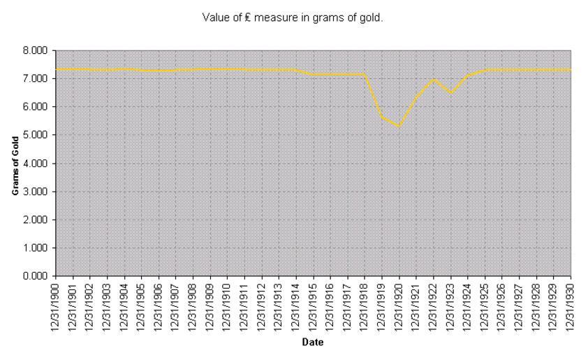 | Keywords: Value of british pound in goldgrams 1900-1930.GIF Graph of British Pounds value in gold grams 1900-1930 Chart Terje Petersen - Charted using Excel<br>Data Price Data 2005-10-18 original upload date <br/> Terje Petersen ie made it myself Original uploader was Terjepetersen at http //en wikipedia org en wikipedia Released into the public domain by the author <br/> Original text This image was created by Terje Petersen and is released into the public domain Original upload log page en wikipedia Value_of_british_pound_in_goldgrams_1900-1930 GIF 2005-10-18 12 14 Terjepetersen 775×474× 16994 bytes <nowiki>Author Terje Petersen ie made it myself Source Price Data - Charted using Excel</nowiki> Gold price charts |