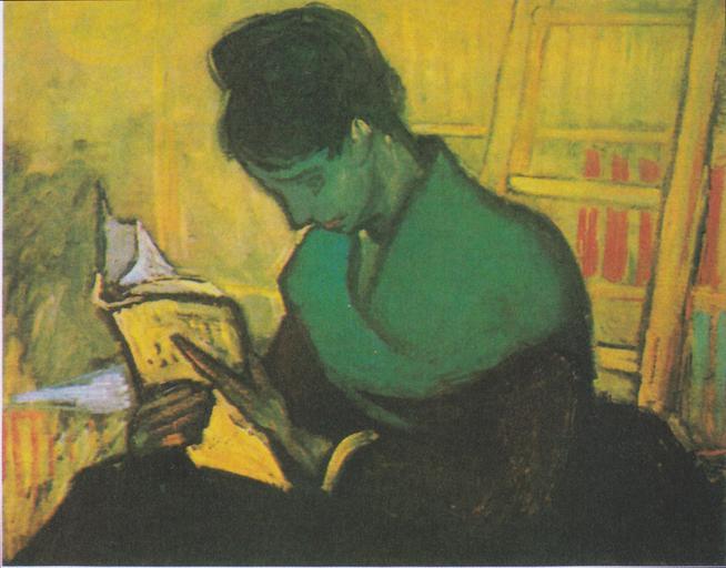| Keywords: Van Gogh - Die Romanleserin.jpeg  Artwork Creator Vincent van Gogh Die Romanleserin Arles December 1888 oil canvas 73 x 92 cm private collection Japan accession number object history credit line Van Gogh catalogues 497 1632 repro from art book PD-old-100 Portrait paintings by Vincent van Gogh Arles 1888 Paintings by Vincent van Gogh in private collections Costume d'Arles |