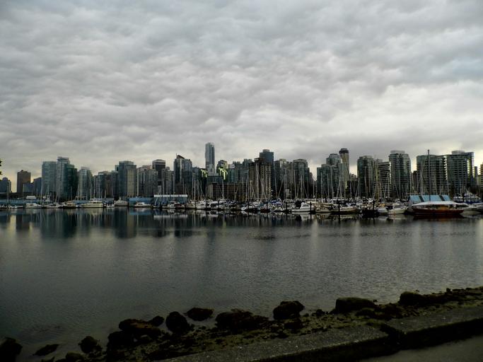 Keywords: vancouver canada skyline water cloudiness rainy
