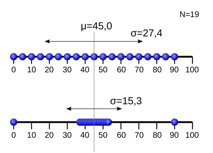 | Keywords: Variance commas.svg en Figure illustrating the concept of variance for two different sets of 19 numbers 0 5 90 and 0 37 38 53 90 Note that commas are used as decimal separator which will not suit every locale own DennisM 2011-06-18 Cc-zero Mathematica diagrams Uncategorized 2015 May 1 |
