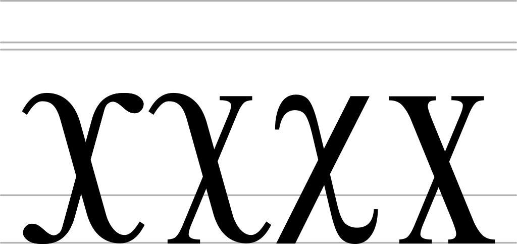 | Keywords: Various Latin chi and stretched x.svg en Various shapes of Latin chi and stretched x from left to right Glyph from Lepsius's Standard Alphabet or his work in ZÄS or AKAW Glyph from IPA's 1949 chart Glyph of usual Greek chi Glyph for stretched x 2012-03-17 own Denis Moyogo Jacquerye cc-zero Uploaded with UploadWizard Chi letter X Roman glyphs in SVG Greek glyphs in SVG |