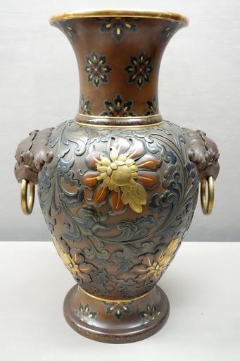 | Keywords: Vase by Sekizawa Uichi (1838-1893), 1892 World's Columbian Exposition, auspicious floral arabesque design - Tokyo National Museum - DSC05604.JPG en Exhibit in the Tokyo National Museum Tokyo Japan This artwork is old enough so that it is in the public domain 2013-09-02 23 06 35 own Daderot PD-old-70 cc-zero Meiji metalwork in the Tokyo National Museum Uploaded with UploadWizard | ||||