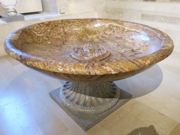 | Keywords: Vasque à tête de Méduse (Louvre, Ma 90).jpg en Vasque with Medusa head Alabaster 2nd century AC Found in 1720 in Roma at the foot of the Aventine hill Louvre museum Paris France fr Vasque à tête de Méduse Albatre fleuri IIe siècle ap J -C Trouvé en 1720 à Rome au pied de l'Aventin Musée du Louvre sf 2016-02-01 Tangopaso Vasque à tête de Méduse Louvre Ma 90 |