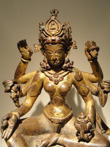 Keywords: Vasudhara, Goddess of Abundance, view 2, Nepal, 1082 AD, gilded copper inlaid with semiprecious stones, traces of vermilion - Arthur M. Sackler Gallery - DSC06053.JPG en Exhibit in the Arthur M Sackler Gallery Washington DC USA This artwork is old enough so that it is in the public domain Photography was permitted in the museum without restriction 2013-02-12 17 23 34 own Daderot cc-zero Sculpture of Nepal in the Arthur M Sackler Gallery Uploaded with UploadWizard