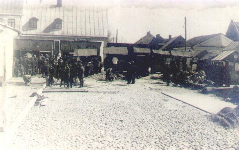 Keywords: Vaŭkavysk, Rynak-Rynkavaja. Ваўкавыск, Рынак-Рынкавая (1935).jpg Ваўкавыск Vaŭkavysk пляц Рынак plac Rynak у бок вуліцы Рынкавай vulica Rynkavaja Рамонт вуліцы Foto volkovysk by Author 1935 PD-old-70 History of Vaŭkavysk