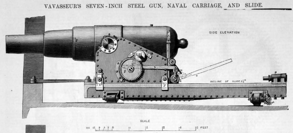 | Keywords: Vavasseur 7 inch Steel Gun 1872.png en One of the gun designs of Josiah Vavasseur at the London Ordnance Works was a 7inch steel gun featured in The Engineer April 19 1872 on page 275 accompanied by an illustration on page 272 The illustration had six views of the gun and this is one of them The Engineer 1872-04-19 page 272 http //www gracesguide co uk/images/1/10/Er18720419 pdf Link to source at gracesguide co uk Unknown illustrator of the time 1872 180 mm artillery Josiah Vavasseur PD-old-70-1923 |