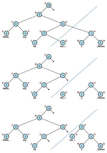 Keywords: Vector Rope split.svg Example of rope splitting A rope of length 22 is split after the 11th character creating two new ropes of length 11 Binary trees Vector diagrams Computer science diagrams 2014-02-03 own assumed Gringer Cc-zero