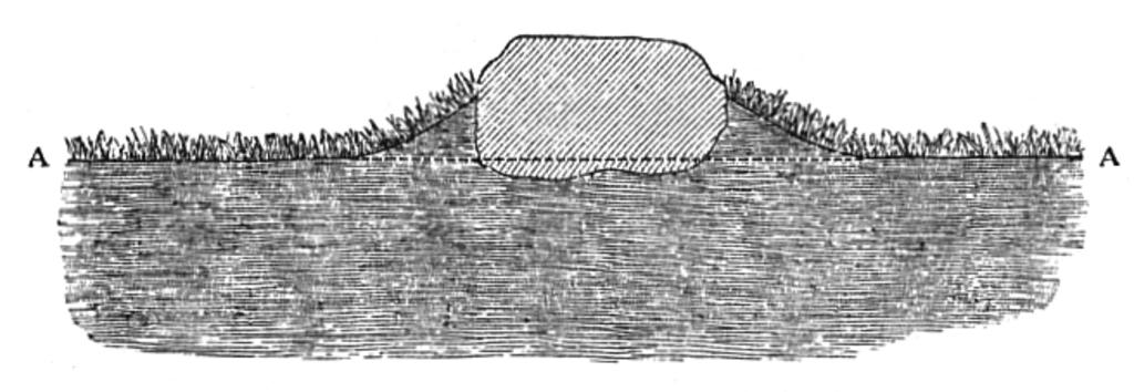 | Keywords: Vegetable Mould and Worms figure 6.png en Figure 6 from The Formation of Vegetable Mould through the Action of Worms curves adjusted in Photoshop to make background white Caption Fig 6 Transverse section across a large stone which had lain on a grass-field for 35 years A A general level of the field The underlying brick rubbish has not been represented Scale ½ inch to one foot Scanned from The Works of Charles Darwin edited by Paul H Barrett R B Freeman volume 28 1989 William Pickering London author October 1881 book publication The Formation of Vegetable Mould through the Action of Worms Black and white illustrations Uploads from public domain works by User Richard001 Soil science diagrams Rocks in art PD-old |