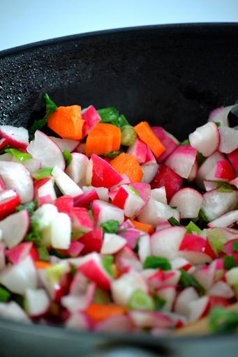 Keywords: vegetables radishes carrots frisch cook food vegetarian eat healthy vitamins edible celery pan benefit from delicious nutrition bless you tasty feed fry up preparation