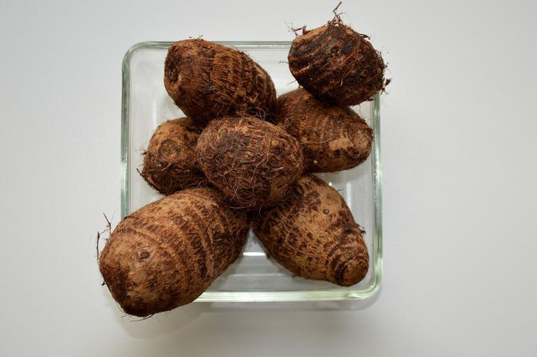 Keywords: vegetables root raw food surinamese chinese natural fresh skin rough texture brown whole bowl