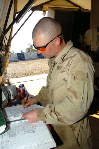 Keywords: Vehicle Maintenance Keeps Apaches Airborne DVIDS37755.jpg en Although being arms deep in a truck engine is a large part of what a light-wheeled vehicle mechanic does day to day they also have to refer to many check lists and manuals to ensure the vehicle is maintained properly and nothing is missed Jonesboro Ark native Spc Christopher Cole a light-wheeled vehicle mechanic for Company E 4th Battalion 227th Aviation Regiment 1st Air Cavalry Brigade 1st Cavalry Division consults one of those manuals during an inspection at the 4-227th's motor pool at Camp Taji Iraq 2007-03-12 Staff Sgt Nathan Hoskins https //www dvidshub net/image/37755 37755 2007-03-12 15 00 TAJI IQ PD-USGov 1st Cavalry Division United States Camp Taji Images from DoD uploaded by Fæ |