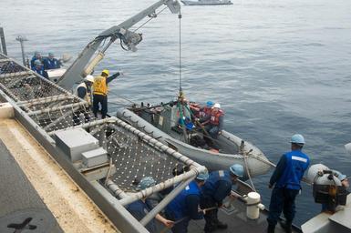 | Keywords: Vehicle and supplies on-load 140203-N-IC565-113.jpg en Sailors lower the ridged-hull inflatable boat in support of a vehicle and supplies on-load aboard the Austin-class amphibious transport dock ship USS Denver LPD 9 Denver is assigned to the Bonhomme Richard Amphibious Ready Group and is conducting operations in the U S 7th Fleet area of responsibility U S Navy photo by Mass Communication Specialist 3rd Class Bradley J Gee/Released 2014-02-03 Petty Officer 3rd Class Bradley Gee https //www dvidshub net/image/1161401 140203-N-IC565-113 2014-02-04 19 26 OKINAWA JP PD-USGov-Military-Navy USS Denver LPD-9 Images from DoD uploaded by Fæ |