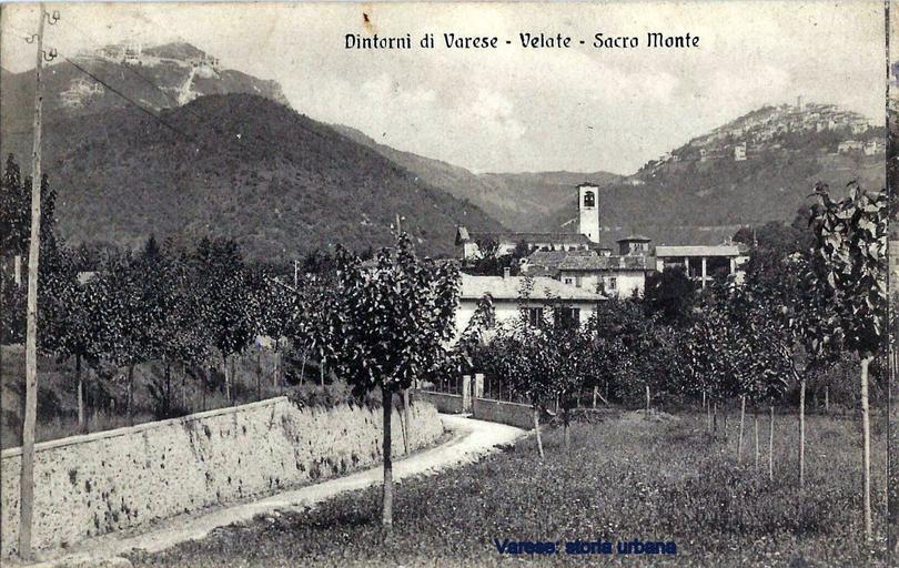 Keywords: Vista su Velate. Sullo sfondo sulla cima del Campo dei Fiori (a sinistra) si intravede il cantiere della costruzione del Grand Hotel omonimo. A destra vista su Santa Maria del Monte. varese velate