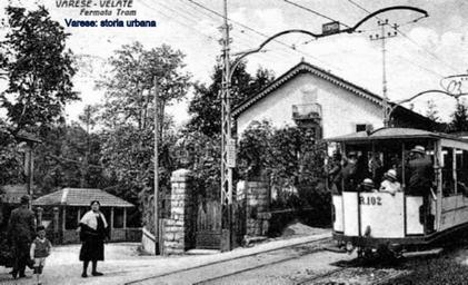 Keywords: Tram in via Sella all'incrocio con via Adige, a sinistra la pensilina della fermata di Velate. varese velate tram