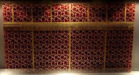 Keywords: Velvet altar frontal, 17th century, Ligurian, view 1, from the Cathedral of San Lorenzo - Museo Diocesano (Genoa) - DSC01852.JPG en Exhibit in Museo Diocesano Via Tommaso Reggio 20 r Genoa Italy All artwork in this museum is old enough so that it is in the public domain Photography was permitted in the museum without restriction 2013-09-25 10 38 04 own Daderot cc-zero Textiles in the Museo Diocesano Genoa Uploaded with UploadWizard Antependium |