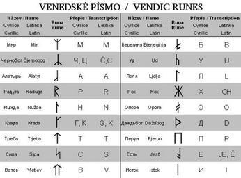 Keywords: Venedic runes.jpg Venedské runy a jejich přepis do latinky a cyrilice / Vendic runes and their transcription into latin and cyrillic own 2007-09-23 Murúg Runic writing Alphabet charts Slavonic runes