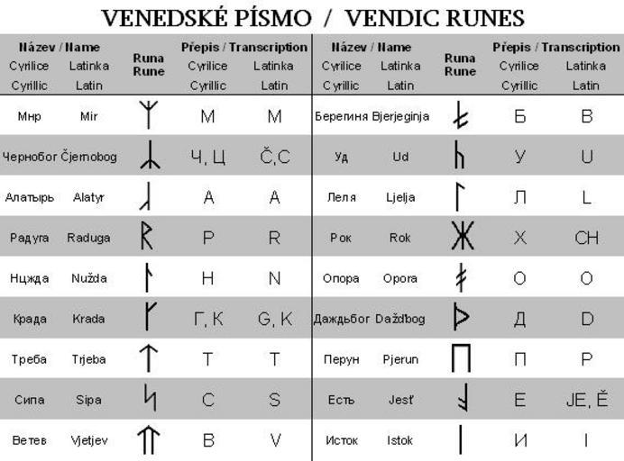 MAKE A MEME View Large Image Venedic runes.jpg Venedské runy a jejich přepis do latinky a cyrilice / Vendic runes and their transcription into latin and cyrillic own 2007-09-23 Murúg Runic writing Alphabet charts Slavonic runes