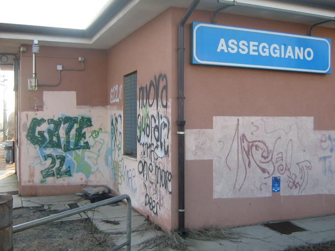 Keywords: Venezia Asseggiano staz ferr cartello.jpg Stazione ferroviaria di Venezia Asseggiano Own Luca Fascia Venezia Asseggiano train station