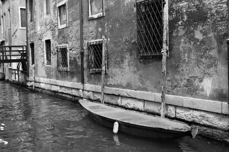 Keywords: venezia vintage venice boatchanal black and white boat chanal building wall