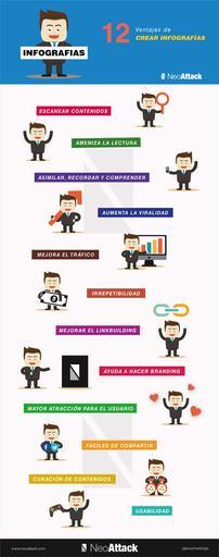 Keywords: infografias ventajas infografia grafico diseño diseñar illustrator vector vectores resumen imagen dibujos neoattack neoattack.com/ventajas-y-desventajas-de-crear-una-infogra... VENTAJAS Y DESVENTAJAS DE LAS INFOGRAFIAS ¿Qué son las infografías? Las infografías son representaciones gráficas de información, conocimientos o datos cuya finalidad es realizar una presentación clara y visual al usuario. Dicho de otra forma, la infografía recoge, organiza y procesa esa información a un formato visual más fácil de comprender y retener para el usuario. 12 Ventajas de crear una infografía Crear infografías es algo que se ha puesto de moda en el entorno del marketing online, y es que está comprobado que estos elementos gráficos aportan una gran cantidad de ventajas que a cualquiera le vendrían bien. A continuación os cuento las ventajas más importantes: Escanear los contenidos Dado que los usuarios cada vez tienden más a escanear los textos siempre la infografía nos dará un punto diferenciador ya que esta es más fácil de escanear y recordar que un texto plano. Amenizar la lectura Siempre se hace más amena una lectura acompañada de imágenes que si leemos un texto plano, este es el mismo sistema que se usa con los niños pequeños para favorecer la lectura de libros. Asimilar, recordar y comprender El acompañamiento de la memoria fotográfica en el proceso de memorización ayuda a asimilar, recordar y comprender mejor estos contenidos y que si únicamente tienen texto. Al añadir imágenes o iconos con colores a los textos de nuestra infografía favoreceremos la memorización de los contenidos y el recuerdo de nuestra marca Fáciles de compartir Las infografías permiten ser compartidas fácilmente a través del código html que podemos ofrecer a nuestros lectores (embed code o código de inserción) para que las incluyan en sus propias publicaciones sin perder su rastro. Viralidad Son muy virales, se comparten mucho más en las redes sociales. Tráfico Al aumentar la viralidad aumenta también el tráfico a la página web, y es que las imágenes infográficas son unos buenos captadores de tráfico web. bancos imagenes gratis Atracción Las imágenes son más atractivas para el usuario que el texto plano. Además, crear infografías también mejora el atractivo de tu contenido de cara a Google por su originalidad y valor añadido. Branding Tienen la capacidad de reforzar la presencia e imagen de marca de una empresa por su atractivo visual. Si introduces tu logotipo en todas tus infografías será más fácil que lo vea más gente. Usabilidad Una infografía puede servir para ilustrar una post, hacer una lista más vistosa, contar una historia, etc. Además, las infografías de illustrator presentan la ventaja de poder moldearlas a tu gusto. Linkbuilding Las buenas infografías siempre tienen una gran repercusión y esto hace que muchos otros blogs las usen, lo cual generará menciones y enlaces tu página web. Curación de contenidos Ayuda a reciclar tu contenido de forma muy visual y atractiva, pudiendo complementar o añadirse a artículos ya escritos dándoles y enfoque distinto y más atractivo. Irrepetibilidad Las infografías, si has hecho bien tu trabajo de imagen de marca para que no sean plagiadas, siempre tenderán más a ser compartidas que un texto plano dada su irrepetibilidad y atractivo. Una infografía no sabe hacerla todo el mundo, y esto la hace especial, única y más difícil de copiar que un texto escrito. ventajas hacer infografias 12 ventajas de crear infografías 2 FALSAS DESVENTAJAS DE LAS INFOGRAFIAS 1) El texto de la imagen no se indexa Solución: El texto de las imágenes ya se puede indexar gracias al formato svg. Es código, no se pixela y se pueden aplicar opciones de movimiento. Vamos, el futuro de las imágenes. También puedes mejorar el SEO insertando el texto deseado antes o después de la infografía, lo que hace que se posicione y todos felices. 2) Son fácilmente robables Solución: Citar al autor dentro de la infografía con su enlace web. Esto no es nada nuevo. Introducir elementos de marca que tengan que ver con el texto para marcar nuestras infografías. Introducir marcas de agua con nuestro logotipo en la mitad de la infografía para que no molesten la lectura y no se puedan recortar. Incluir ejemplos de nuestra marca para aumentar la notoriedad y recordar a los usuarios la autoría. neoattack.com/ventajas-y-desventajas-de-crear-una-infogra... VENTAJAS Y DESVENTAJAS DE LAS INFOGRAFIAS ¿Qué son las infografías? Las infografías son representaciones gráficas de información, conocimientos o datos cuya finalidad es realizar una presentación clara y visual al usuario. Dicho de otra forma, la infografía recoge, organiza y procesa esa información a un formato visual más fácil de comprender y retener para el usuario. 12 Ventajas de crear una infografía Crear infografías es algo que se ha puesto de moda en el entorno del marketing online, y es que está comprobado que estos elementos gráficos aportan una gran cantidad de ventajas que a cualquiera le vendrían bien. A continuación os cuento las ventajas más importantes: Escanear los contenidos Dado que los usuarios cada vez tienden más a escanear los textos siempre la infografía nos dará un punto diferenciador ya que esta es más fácil de escanear y recordar que un texto plano. Amenizar la lectura Siempre se hace más amena una lectura acompañada de imágenes que si leemos un texto plano, este es el mismo sistema que se usa con los niños pequeños para favorecer la lectura de libros. Asimilar, recordar y comprender El acompañamiento de la memoria fotográfica en el proceso de memorización ayuda a asimilar, recordar y comprender mejor estos contenidos y que si únicamente tienen texto. Al añadir imágenes o iconos con colores a los textos de nuestra infografía favoreceremos la memorización de los contenidos y el recuerdo de nuestra marca Fáciles de comp