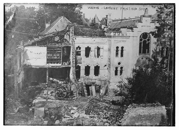 Keywords: Verdun - Laurent printing shop (LOC) (26283585126).jpg Bain News Service publisher Verdun - Laurent printing shop between ca 1915 and ca 1920 1 negative glass ; 5 x 7 in or smaller Notes Title from data provided by the Bain News Service on the negative Forms part of George Grantham Bain Collection Library of Congress Format Glass negatives Rights Info No known restrictions on publication Repository Library of Congress Prints and Photographs Division Washington D C 20540 USA http //hdl loc gov/loc pnp/pp print hdl loc gov/loc pnp/pp print General information about the Bain Collection is available at http //hdl loc gov/loc pnp/pp ggbain hdl loc gov/loc pnp/pp ggbain Higher resolution image is available Persistent URL http //hdl loc gov/loc pnp/ggbain 26566 hdl loc gov/loc pnp/ggbain 26566 Call Number LC-B2- 4545-4 https //www flickr com/photos/library_of_congress/26283585126/ Verdun - Laurent printing shop LOC LOC-image ggbain 26566 https //www flickr com/people/8623220 N02 The Library of Congress http //www loc gov/rr/print/195_copr html noknown The Library of Congress Flickr Commons PD-Bain The Library of Congress https //flickr com/photos/8623220 N02/26283585126 2016-09-08 05 54 10 pd History of Verdun |