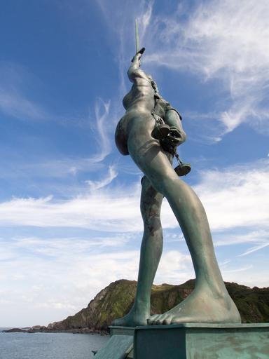 Keywords: verity stainless steel stainlesssteel bronze statue bronzestatue damien hirst damienhirst sculpture pier harbour ilfracombe devon bristol channel truth modern allegory truth and justice truthandjustice pregnant woman pregnant woman pregnantwoman fetus scales of justice scalesofjustice little dancer littledancer edgar degas edgardegas virgin mother virginmother pangolin polymer-strengthened fibre glass polymerstrengthenedfibreglass fibre glass fibreglass angel of the north angelofthenorth controversial critical ugly outdoor statue sport jump Verity is a stainless steel and bronze statue created by Damien Hirst. The 20.25-metre (66.4 ft) tall sculpture stands on the pier at the entrance to the harbour in Ilfracombe, Devon, looking out over the Bristol Channel towards South Wales. It has been loaned to the town for 20 years. The name of the piece refers to "truth" and Hirst describes his work as a "modern allegory of truth and justice". The statue depicts a pregnant woman holding aloft a sword while carrying the scales of justice and standing on a pile of law books. Half of the sculpture shows the internal anatomy of the pregnant woman, with the fetus clearly visible. The stance has been described as a reference to Little Dancer of Fourteen Years by Edgar Degas, a work that previously inspired Hirst when he created Virgin Mother. The sculpture was cast in stainless steel and bronze in 40 separate sections by Pangolin Editions. The sword, which gives the statue much of its height, and the upper left arm is one polymer-strengthened fibre glass piece. Before being cleared for erection the statue was subjected to tests in a wind tunnel to ensure that it could cope with high winds and spray from the sea. Measuring 25cm (10 inches) higher than the Angel of the North, Verity became the tallest statue in the UK when it was put into place. Members of North Devon Council referred to the controversial nature of the statue as a potential boost to tourism. Local reaction was very mixed, with those critical of the work calling it "ugly" and stating that "it isn't suitable for a Victorian seaside town". Before they allowed planning permission the council received 100 letters from people who objected to the installation of the statue, and 177 letters supporting the application. In August 2013 councillors announced that the statue had a "tremendous effect" with people visiting the town solely to see Hirst's work. Hirst, who lives in Ilfracombe, has loaned the statue to the town for 20 years starting from its erection on 16 October 2012. Verity is a stainless steel and bronze statue created by Damien Hirst. The 20.25-metre (66.4 ft) tall sculpture stands on the pier at the entrance to the harbour in Ilfracombe, Devon, looking out over the Bristol Channel towards South Wales. It has been loaned to the town for 20 years. The name of the piece refers to "truth" and Hirst describes his work as a "modern allegory of truth and justice". The statue depicts a pregnant woman holding aloft a sword while carrying the scales of justice and standing on a pile of law books. Half of the sculpture shows the internal anatomy of the pregnant woman, with the fetus clearly visible. The stance has been described as a reference to Little Dancer of Fourteen Years by Edgar Degas, a work that previously inspired Hirst when he created Virgin Mother. The sculpture was cast in stainless steel and bronze in 40 separate sections by Pangolin Editions. The sword, which gives the statue much of its height, and the upper left arm is one polymer-strengthened fibre glass piece. Before being cleared for erection the statue was subjected to tests in a wind tunnel to ensure that it could cope with high winds and spray from the sea. Measuring 25cm (10 inches) higher than the Angel of the North, Verity became the tallest statue in the UK when it was put into place. Members of North Devon Council referred to the controversial nature of the statue as a potential boost to tourism. Local reaction was very mixed, with those critical of the work calling it "ugly" and stating that "it isn't suitable for a Victorian seaside town". Before they allowed planning permission the council received 100 letters from people who objected to the installation of the statue, and 177 letters supporting the application. In August 2013 councillors announced that the statue had a "tremendous effect" with people visiting the town solely to see Hirst's work. Hirst, who lives in Ilfracombe, has loaned the statue to the town for 20 years starting from its erection on 16 October 2012. |