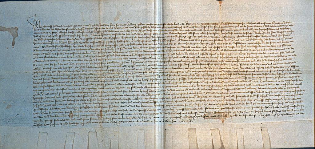 | Keywords: Verkauf 1403 Vertrag Tübingen.jpg Verkaufurkunde der Herrschaft Schalksburg vom 3 November 1403 Hauptstaatsarchiv Stuttgart Signatur A 602 Nr 6617 <br> eingescannt aus Die Herrschaft Schalksburg zwischen Zollern und Württemberg; herausgegeben von Andreas Zekorn Peter Thaddäus Lang und Hans Schimpf-Reinhardt; Epfendorf 2005 ISBN 3-928471-56-2 1403-11-03 author Author died more than 70 years ago - public domain <gallery> Image Vertrag-MZ-377bw jpg Texttranscription Image Vertrag-MZ-378bw jpg Texttranscription Image Vertrag-MZ-379bw jpg Texttranscription </gallery> PD-old-100 Zollern-Schalksburg Collections of Hauptstaatsarchiv Stuttgart 1403 |