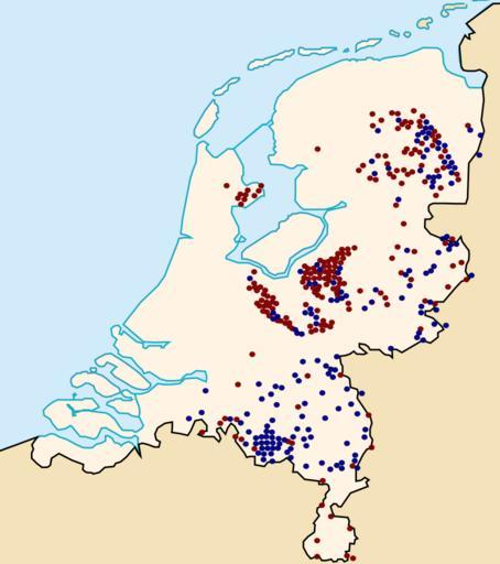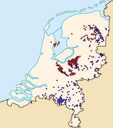 Keywords: Verspreiding grafheuvels-urnenvelden Nederland.svg en Tumulus in the Netherlands In blue the Urnfields in red Tumulus nl Grafheuvels in Nederland In blauw Urnenvelden in rood grafheuvels own Arch 2011 Based on image Map_of_the_Netherlands_nl png with locationscourse Cultuurhistorisch Beheer http //www chbeheer nl/elementen/grafheuvel-en-urnenveld chbeheer nl Urnfield culture Cc-zero