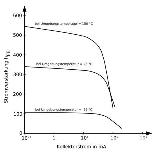 Keywords: Verstärkungskennlinie BC547B.svg de Bipolartransistor DC gain in relation to I_C and ambient temperature of Type BC547B at U_CE 5V own Mik81 Created with Inkscape BJT diagrams Cc-zero