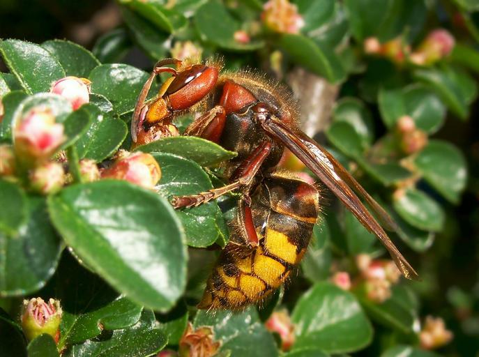 | Keywords: Vespa crabro germana lateralview 02 HQ.jpg Vespa crabro germana King - Hornet on a Cotoneaster Germany The hugest Wasp on earth with wonderful colours This Photo was taken about 50 Kilometers south from Frankfurt/Main in Germany in my own garden High quality image file; Hornissenkoenigin Vespa crabro germana auf Zwergmispelstrauch Seitenansicht; Diese Königin hat den Winter überstanden und nutzt die Zwergmispelblüte als Nektarquelle zur Nahrung Aufgenommen 50 Kilometer südlich von Frankfurt/Main Weitere Informationen unter http //www hornissenschutz de/ und http //www vespa-crabro de/ own 2007-05-01 Markus Flath MFbay Vespa crabro |