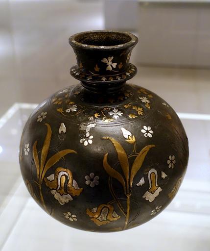 View Original: | Vessel of a water pipe (huqqa), Deccan, Bidar, 17th century, zinc inlaid with silver and brass - Ethnological Museum, Berlin - DSC01559.JPG (3369x4024) | |||