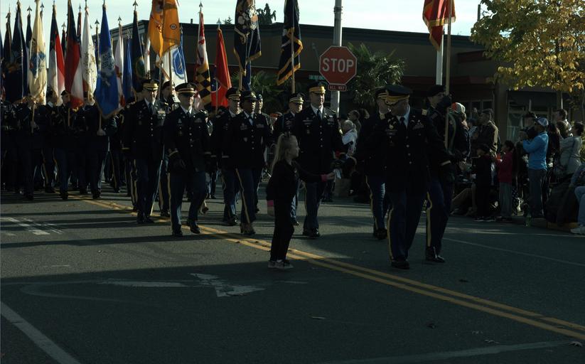 MAKE A MEME View Large Image Veterans Day parade 141108-N-MN975-028.jpg en A girl presents a rose to an Army squad commander during Auburn's 49th annual Veterans Day Parade The purpose of Auburn's Veterans Day parade is to positively focus on honoring our country's ...