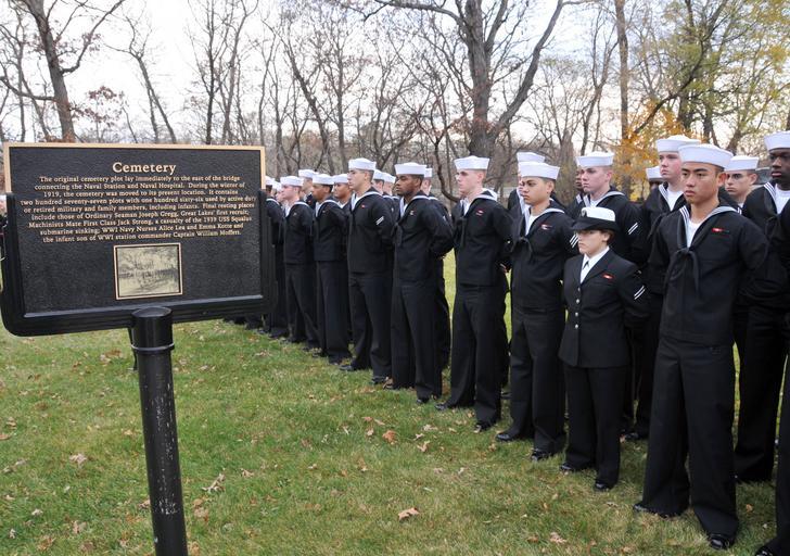 | Keywords: Veteran's Day wreath-laying ceremony 091110-N-IK959-377.jpg en U S Sailors with the Naval Hospital Corps School stand in formation during a Veteran's Day wreath-laying ceremony at the U S Naval Cemetery on Naval Station Great Lakes Ill Nov 10 2009 U S Navy photo by Scott A Thornbloom/Released 2009-11-10 Scott Thornbloom https //www dvidshub net/image/1579572 091110-N-IK959-377 2014-09-29 16 17 NAVAL STATION GREAT LAKES IL US PD-USGov-Military-Navy Naval Station Great Lakes Images from DoD uploaded by Fæ |