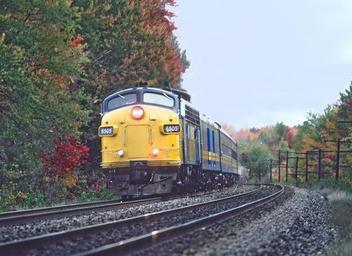 | Keywords: outdoor railroad vehicle train locomotive A Roger Puta photograph A Roger Puta photograph A Roger Puta photograph VIA 6505, Train 1 at Coteau du Lak, Que on October 8, 1987 02 (22827893722).jpg en A Roger Puta photograph 2015-11-04 16 17 31 https //www flickr com/people/129679309 N05 railfan 44 https //www flickr com/photos/129679309 N05/22827893722/ User Fæ/Flickr API Puta's Canadian Roads other than CP and CN Via Rail Canada E-Units and F-Units Streamliners Classic EMD Power EMD Gallery Canadian Railfans Mel Finzer RogerPuta Photographs by Roger Puta Photos uploaded from Flickr by Fæ using a script Rolling stock of Via Rail 1987 in rail transport in Canada |