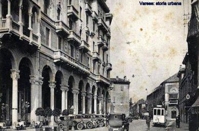 | Keywords: varese tram via verbano viaverbano via walter marcobi viawaltermarcobi road outdoor building architecture column colonnade photo border A sinistra palazzo De Micheli e, di seguito, il palazzo della Banca Commerciale Italiana, entrambe sono opere della fine degli anni '20 dell'ing. Edoardo Flumiani. Segue uno scorcio di casa Crugnola (ing. Zafferri). A destra la sequenza delle vecchie case di via Verbano (ora Marcobi) appare ancora intatta. All'imbocco di via Sacco uno scorcio di casa Sacco/Ghirlanda (arch. Francesco Peverelli, 1808) sostituita nel 1964 dal palazzo della Banca d'Italia (arch. Ignazio Gardella). A sinistra palazzo De Micheli e, di seguito, il palazzo della Banca Commerciale Italiana, entrambe sono opere della fine degli anni '20 dell'ing. Edoardo Flumiani. Segue uno scorcio di casa Crugnola (ing. Zafferri). A destra la sequenza delle vecchie case di via Verbano (ora Marcobi) appare ancora intatta. All'imbocco di via Sacco uno scorcio di casa Sacco/Ghirlanda (arch. Francesco Peverelli, 1808) sostituita nel 1964 dal palazzo della Banca d'Italia (arch. Ignazio Gardella). |