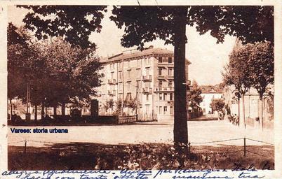 | Keywords: varese caserma garibaldi casermagaribaldi viale umberto i vialeumbertoi via medaglie d'oro viamedagliedoro outdoor photo border Viale Umberto I con al fondo la caserma Garibaldi (arch. Silvio Spinelli, 1861). Sulla sinistra il parco della villa dei Dandolo (1810) sorto al posto del convento dell'Annunciata (1468) è già stato distrutto dal grande edificio ad angolo (arch. Bianchi, 1922-26). Viale Umberto I con al fondo la caserma Garibaldi (arch. Silvio Spinelli, 1861). Sulla sinistra il parco della villa dei Dandolo (1810) sorto al posto del convento dell'Annunciata (1468) è già stato distrutto dal grande edificio ad angolo (arch. Bianchi, 1922-26). |