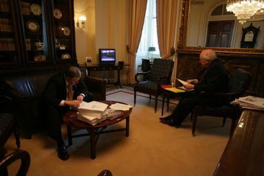 View Original:Vice_President_Cheney_and_David_Addington_Review_Documents.jpg (4992x3328)