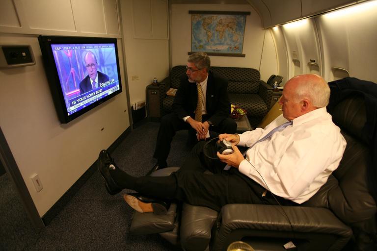 View Original:Vice_President_Cheney_Meets_with_David_Addington_and_Watches_a_News_Broadcast_Aboard_Air_Force_Two.jpg (4368x2912)