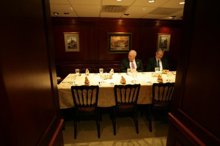 View Original:Vice_President_Cheney_Sits_and_David_Addington_at_Economic_Principals_Lunch_Held_in_the_White_House_Mess.jpg (4992x3328)