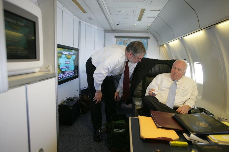 View Original:Vice_President_Cheney_Talks_with_David_Addington_Aboard_Air_Force_Two.jpg (4992x3328)